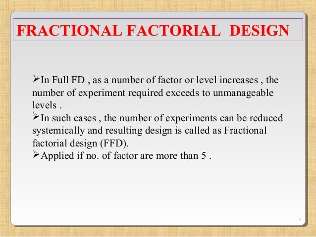 We have plotted these effects against what we would expect if they were normally distributed. Let's look at another example in order to reinforce your understanding of the notation for these types of designs. Below is a figure of the factors and levels as well as the table representing this experimental space. These equations can be used as a predictive model to determine wt% methanol in biodiesel and number of theoretical stages achieved at different operating conditions without actually performing the experiments. However, the limits of the model should be tested before the model is used to predict responses at many different operating conditions.